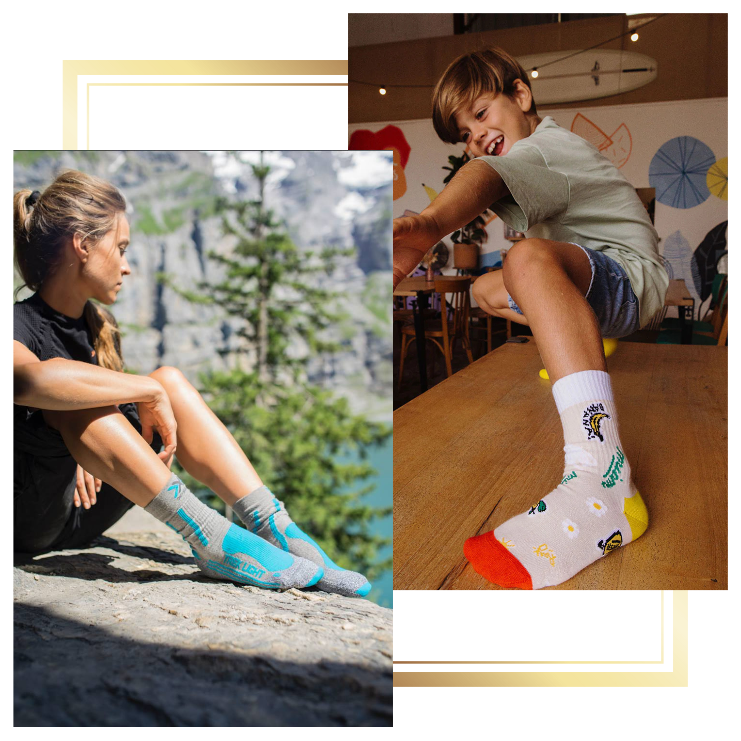 Nous proposons une grande variété de chaussettes pour tous les goûts et besoins : chaussettes pour hommes, femmes, enfants, bébés, chaussettes sportives, fantaisie, et bien plus encore.